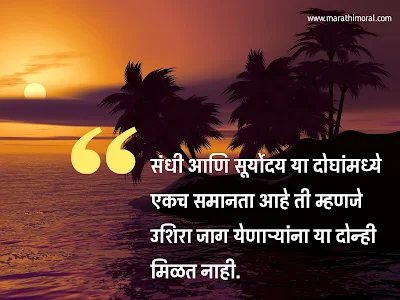 संधी आणि सूर्योदय या दोघांमध्ये एकच समानता आहे ती म्हणजे उशिरा जाग येणाऱ्यांना या दोन्ही मिळत नाही.