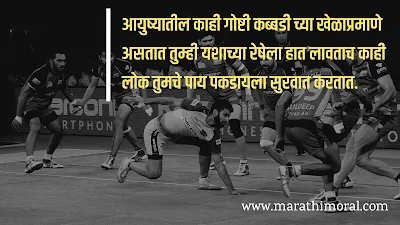 1. आयुष्यातील काही गोष्टी कब्बडी च्या खेळाप्रमाणे असतात तुम्ही यशाच्या रेषेला हात लावताच काही लोक तुमचे पाय पकडायला सुरवात करतात.