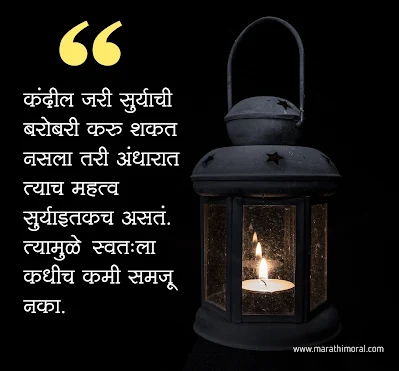 कंदील जरी सुर्याची बरोबरी करु शकत नसला तरी अंधारात त्याच महत्व सुर्याइतकच असतं. त्यामुळे स्वत:ला कधीच कमी समजू नका.