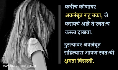 कधीच कोणावर अवलंबून राहू नका, जे करायचं आहे ते स्वतःच करून दाखवा. दुसऱ्यावर अवलंबून राहिल्यास आपण स्वतःची क्षमता विसरतो.