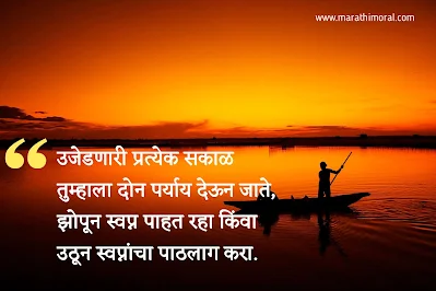 उजेडणारी प्रत्येक सकाळ तुम्हाला दोन पर्याय देऊन जाते, झोपून स्वप्न पाहत रहा किंवा उठून स्वप्नांचा पाठलाग करा.