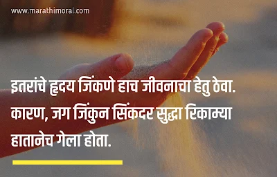 इतरांचे हृदय जिंकणे हाच जीवनाचा हेतु ठेवा कारण जग जिंकुन सिंकदर सुद्धा रिकाम्या हातानेच गेला होता.