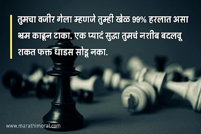 तुमचा वजीर गेला म्हणजे तुम्ही खेळ 99% हरलात असा भ्रम काढून टाका. एक प्यादं सुद्धा तुमचं नशीब बदलवू शकत फक्त धाडस सोडू नका.