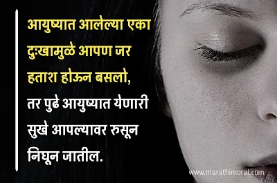 आयुष्यात आलेल्या एका दुःखामुळे आपण जर हताश होऊन बसलो तर पुढे आयुष्यात येणारी सुखे आपल्यावर रुसून निघून जातील.